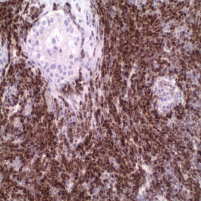 الگوی رنگآمیزی هستهای: برخلاف بسیاری از آنتیبادیهای دیگر، آنتیبادی TdT یک الگوی هستهای (Nuclear) واضح و مشخص را در سلولهای مثبت ایجاد میکند. این الگو به پاتولوژیست این امکان را میدهد که به راحتی لنفوبلاستهای نابالغ را در میان جمعیتهای سلولی دیگر در نمونههای بافتی یا مغز استخوان شناسایی کند.