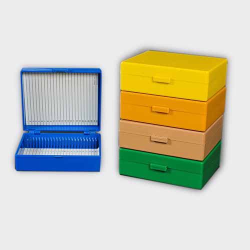 این فولدر از شکستن یا خط افتادن لام ها جلوگیری می کند و با پوشش محکم خود، مانع از آلوده شدن نمونه ها می شود. می توانید روی هر خانه شماره یا مشخصات بنویسید تا به سرعت لام مورد نظر خود را پیدا کنید. جنس این فولدر در برابر مواد شیمیایی مقاوم است و می توان آن را استریل کرد. این ویژگی ها کار را برای تکنسین ها و محققان آسان تر می کنند.